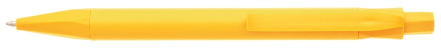 Plastová žlutá propiska MARCI z kukuřičného PLA plastu (přírodní náhražka plastu vyrobená ze škrobu fermentované rostliny). Velkoobsahová náplň, modře píšící.