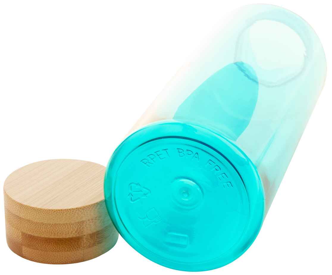 Láhev RPET s bambusovým víčkem, 500 ml. Bez BPA. Nevhodné pro sycené nápoje.