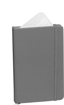 Blok s deskami z PU kůže, se 100 linkovanými listy, záložkou a gumičkou. Velikost A6.