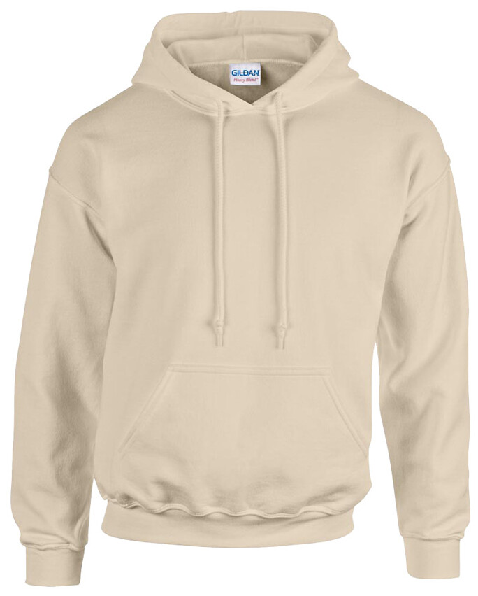 Mikina s kapucí z 50% bavlny a 50% polyesteru s přední kapsou. 271 g/m2 (bílá 257 g/m2). Produkt značky Gildan.