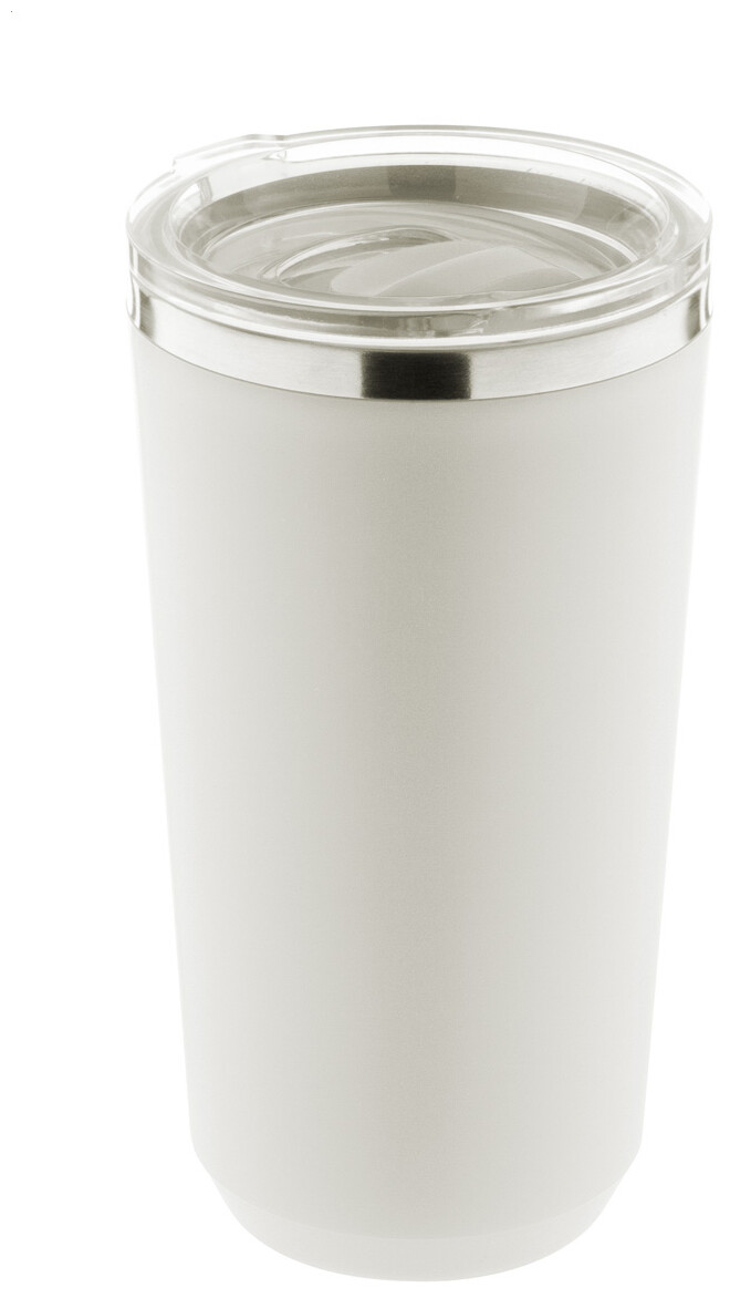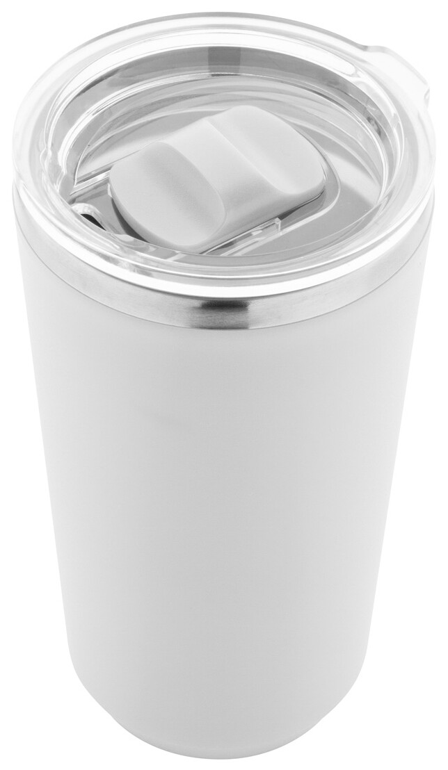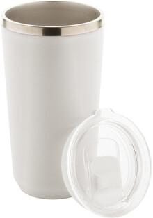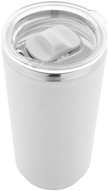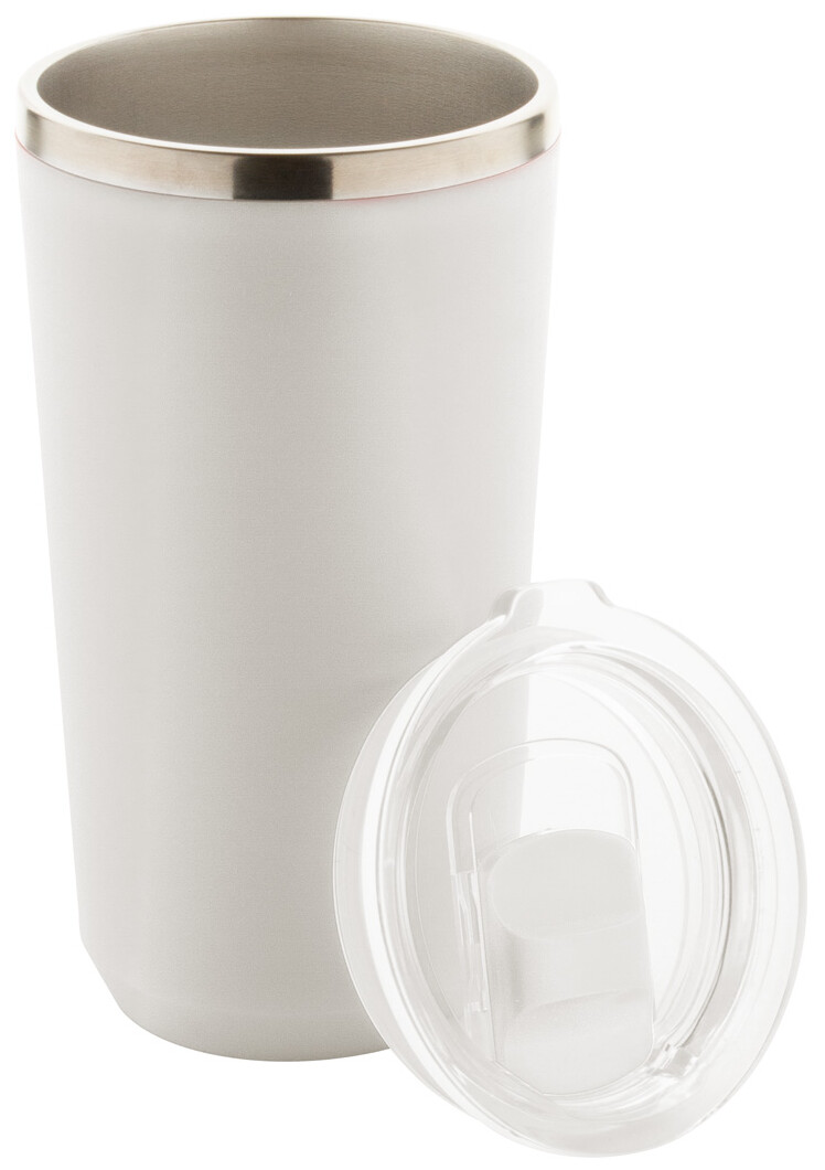 PP plastem pokrytý dvoustěnný, nerezový termo hrnek s víčkem na pití. 500 ml.
