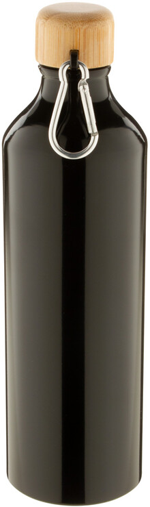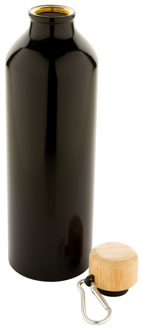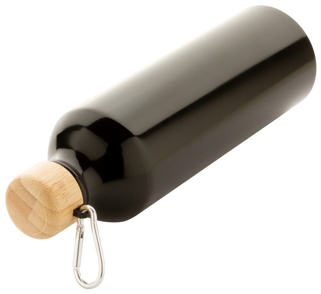 Hliníková láhev s bambusovým víčkem a karabinou, 800 ml.