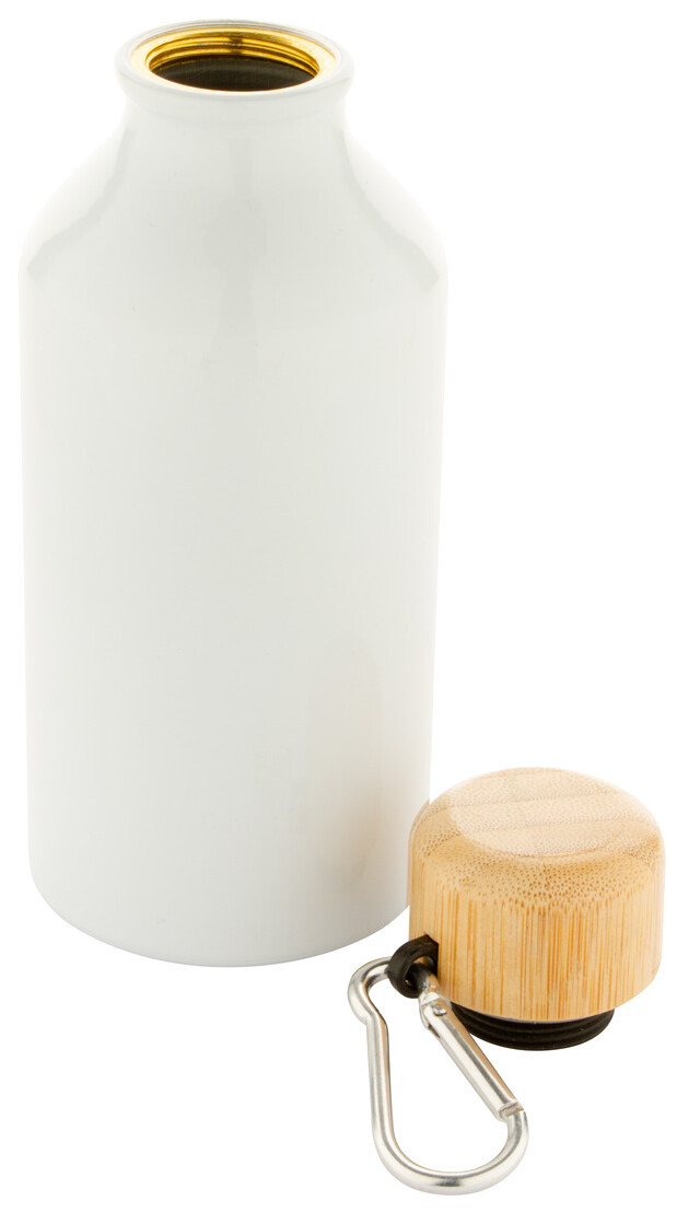 Hliníková láhev s bambusovým víčkem a karabinou, 400 ml.