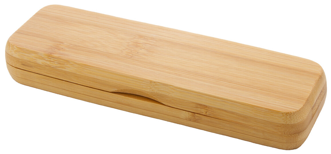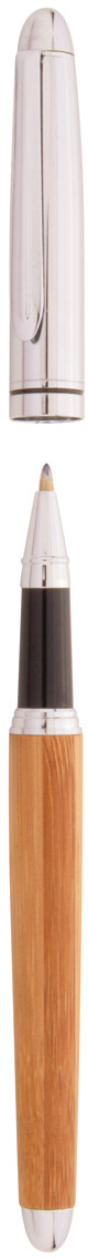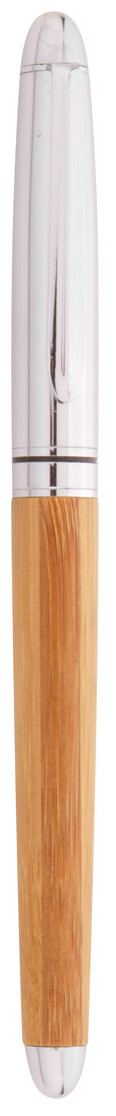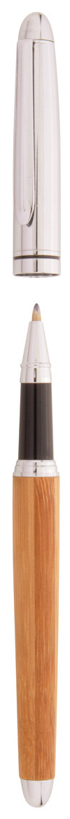 Elegantní sada s kuličkovým perem a rollerem, bambus/kov v dárkové krabičce z bambusu. S modrou náplní.
