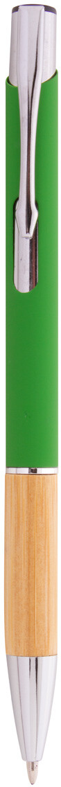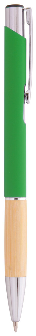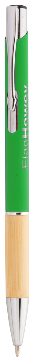 Hliníkové kuličkové pero s bambusovým úchopem, pogumovaným povrchem a modrou náplní. Se speciální vrstvou pro zrcadlové laserové gravírování.