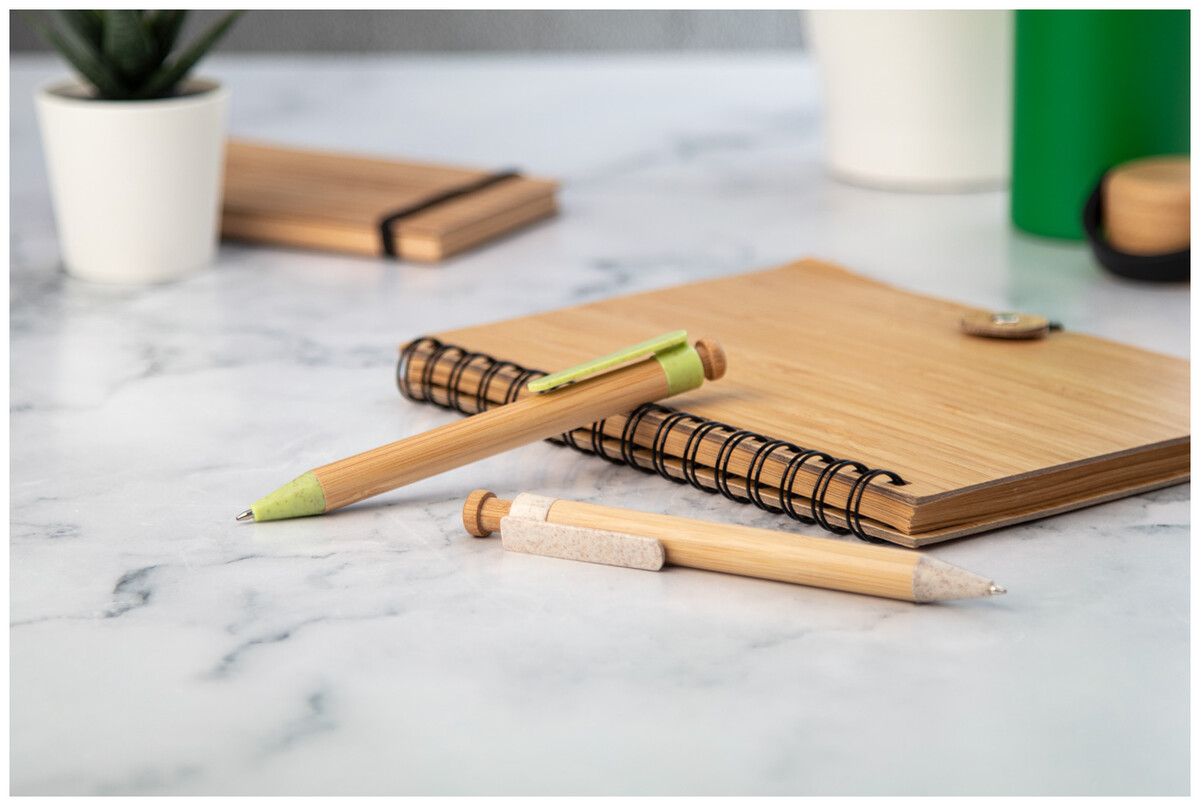 Bambusové kuličkové pero s ekologickými plastovými díly z pšeničné slámy. S modrou náplní.
