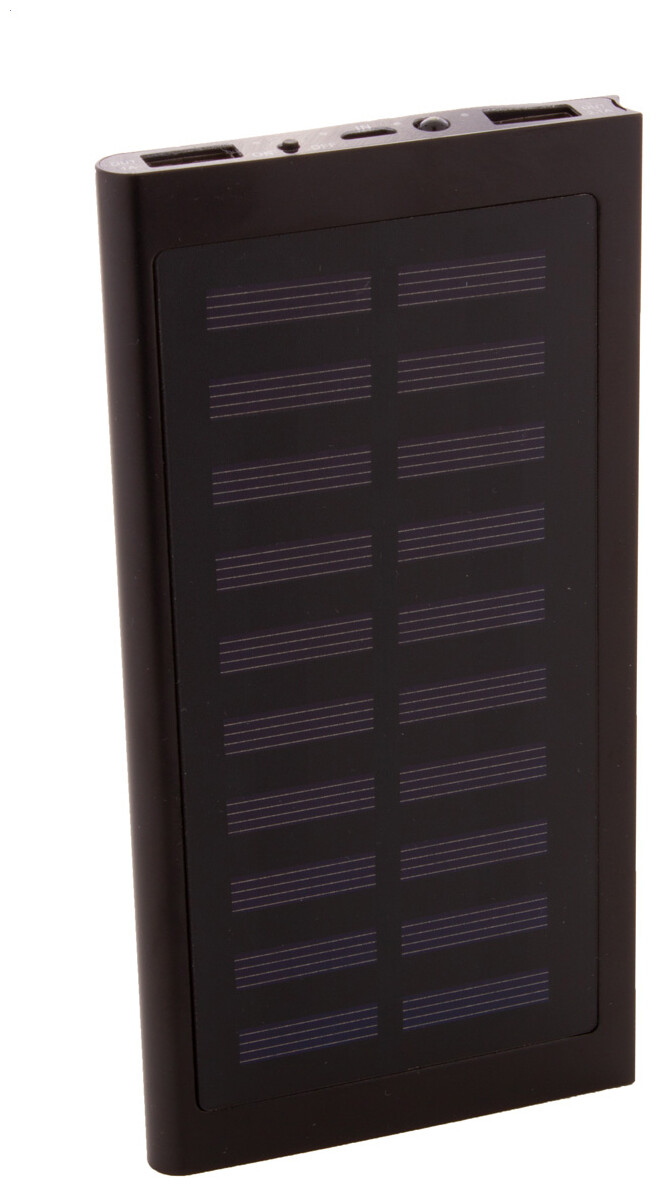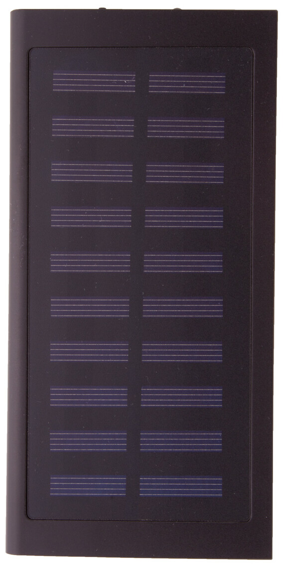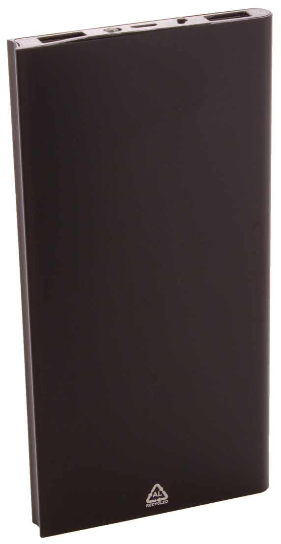 USB power banka v pouzdře z recyklovaného hliníku se zabudovanou solární nabíječkou a 4000 mAh baterií. Se 2 porty USB a 1 portem USB-C pro nabíječku. Vstupní port USB-C. Včetně USB nabíjecího kabelu.
