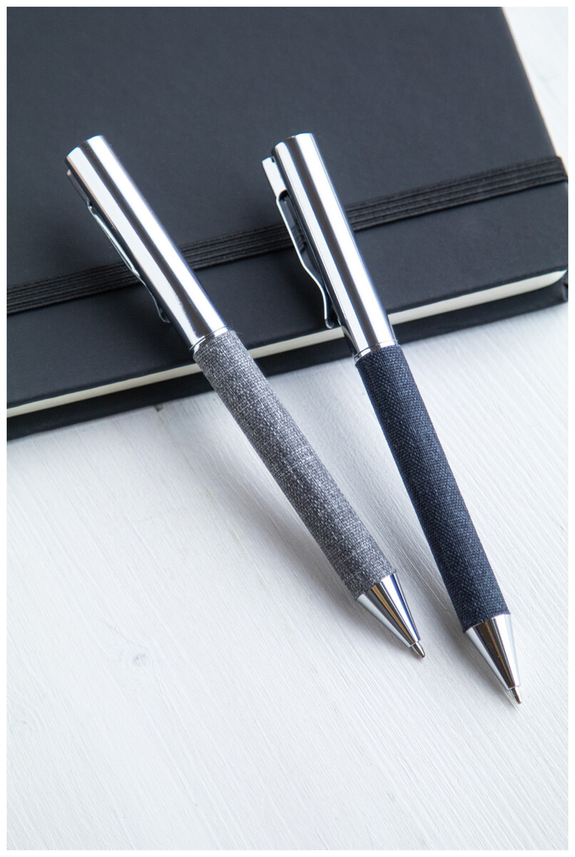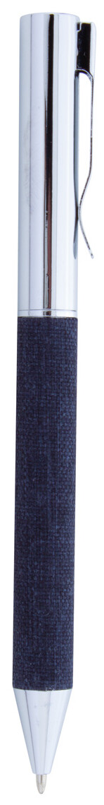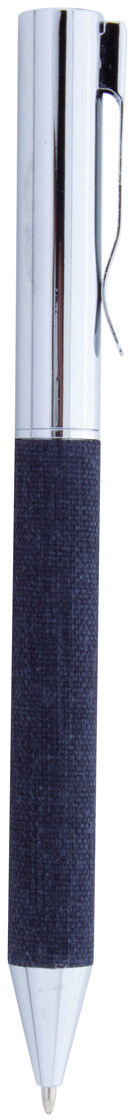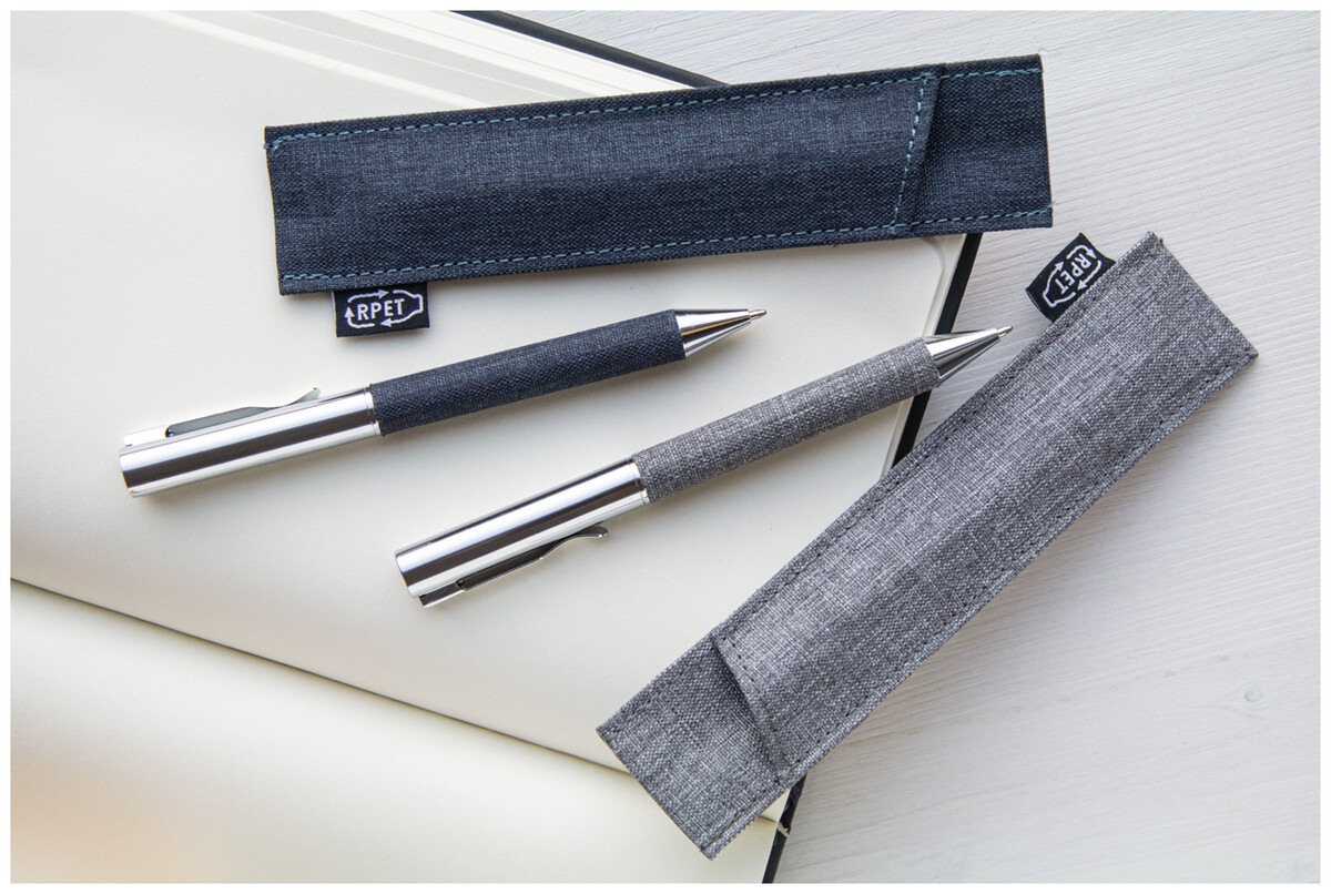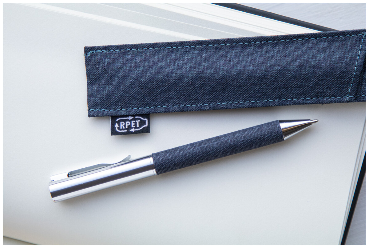 Kovové kuličkové pero s twist otočným mechanismem potažené polyesterem RPET. V odpovídajícím polyesterovém pouzdře RPET. S modrou náplní.