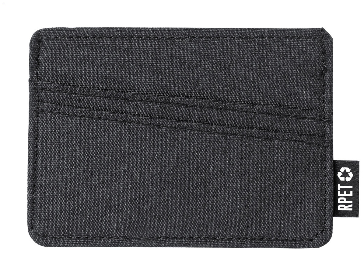 Polyesterový RPET obal na kreditní karty se 3 přihrádkami na karty. S výrazným štítkem RPET.