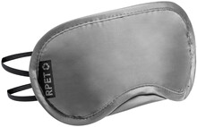 RPET polyesterová cestovní maska na oči s gumovými pásky, v RPET sáčku se stahovací šňůrkou. S výrazným štítkem RPET.