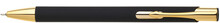 Kovová propiska s pogumovaným povrchem a zlatými doplňky, s efektem laseru v lesklé zlaté barvě. Náplň velkoobsahová, semigelová.