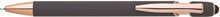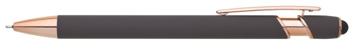 Kovová propiska se soft povrchem, touch koncovkou a doplňky v růžovo-zlaté barvě. Laserované logo je lesklé, růžovo-zlaté. Náplň semigelová, modře píšící.