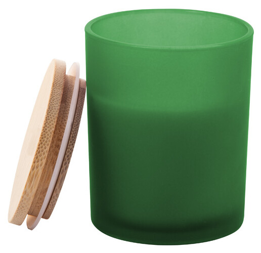 Vosková svíčka na rostlinné bázi v matné skleničce s bambusovým víčkem. Se 120 gramy vosku. V kraftové papírové krabici.