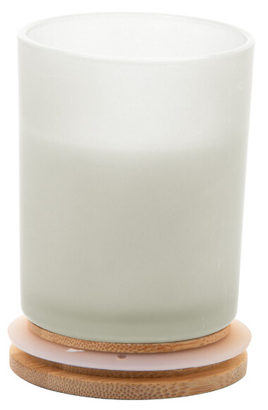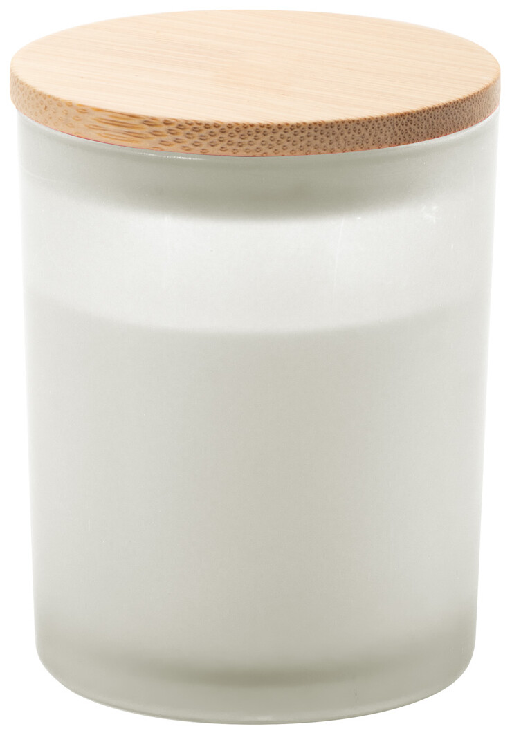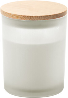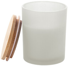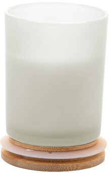 Vosková svíčka na rostlinné bázi v matné skleničce s bambusovým víčkem. Se 120 gramy vosku. V kraftové papírové krabici.