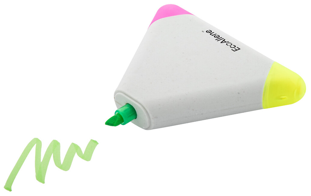 Zvýrazňovač ve tvaru trojúhelníku se 3 barvami z recyklovaného plastu EcoAllene®. EcoAllene® je nový a inovativní materiál získaný z recyklace nápojových kartonů.