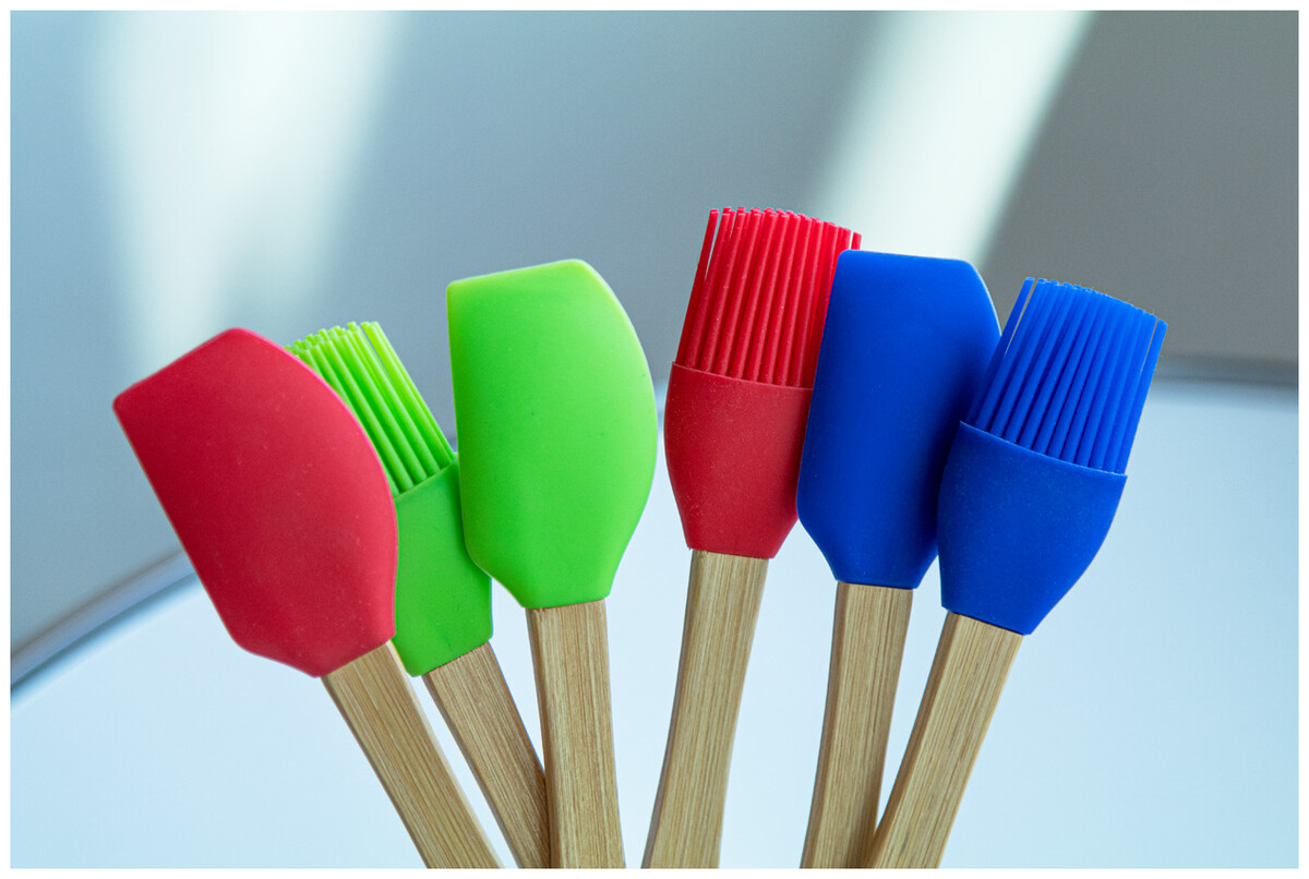 Silikonová stěrka na pečení s bambusovou rukojetí.