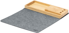 Skládací polyesterová podložka pod myš RPET se silikonovou základnou. S vestavěnou bezdrátovou rychlonabíječkou (15W) a bambusovým držákem mobilního telefonu. Polyester 300D RPET. Včetně USB nabíjecího kabelu.