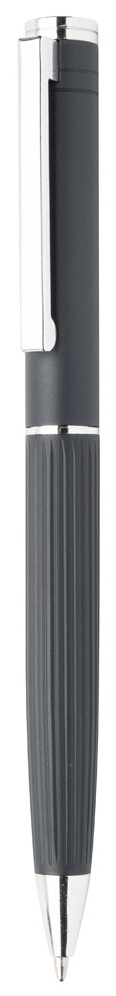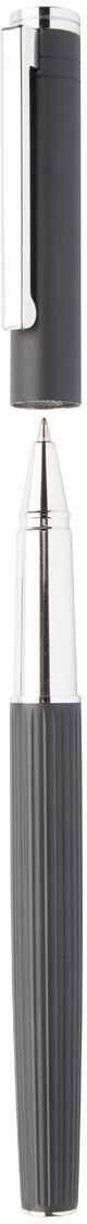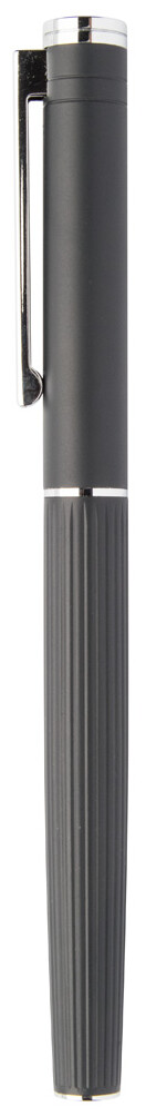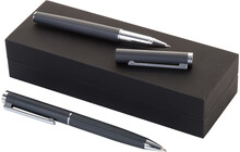 Elegantní sada hliníkového kuličkového pera a rolleru s proužkovaným tubusem. V černé dárkové krabičce, s modrou náplní.
