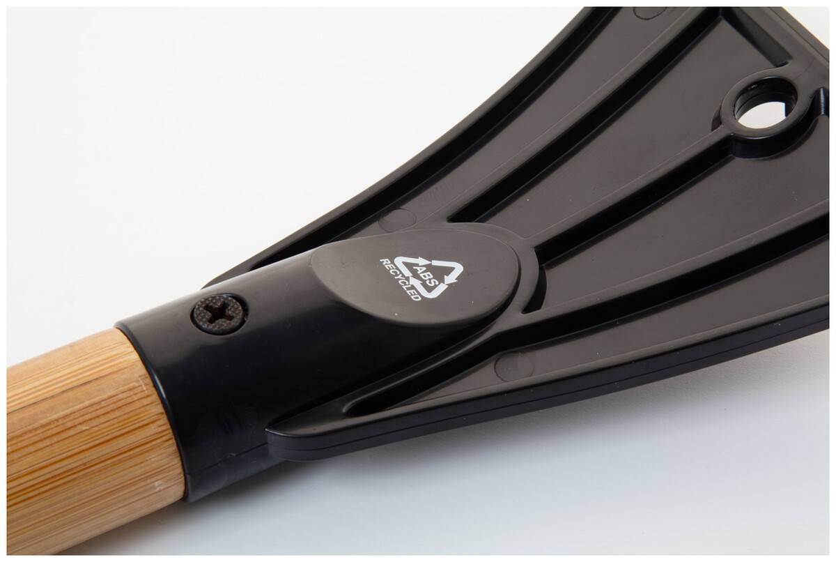 Recyklovaná ABS škrabka na led s kartáčem a bambusovou rukojetí.