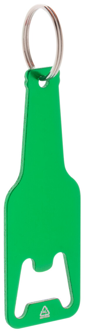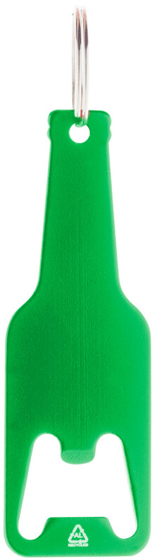 Otvírák na láhve z recyklovaného hliníku s kovovým kroužkem na klíče.