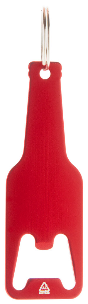 Otvírák na láhve z recyklovaného hliníku s kovovým kroužkem na klíče.