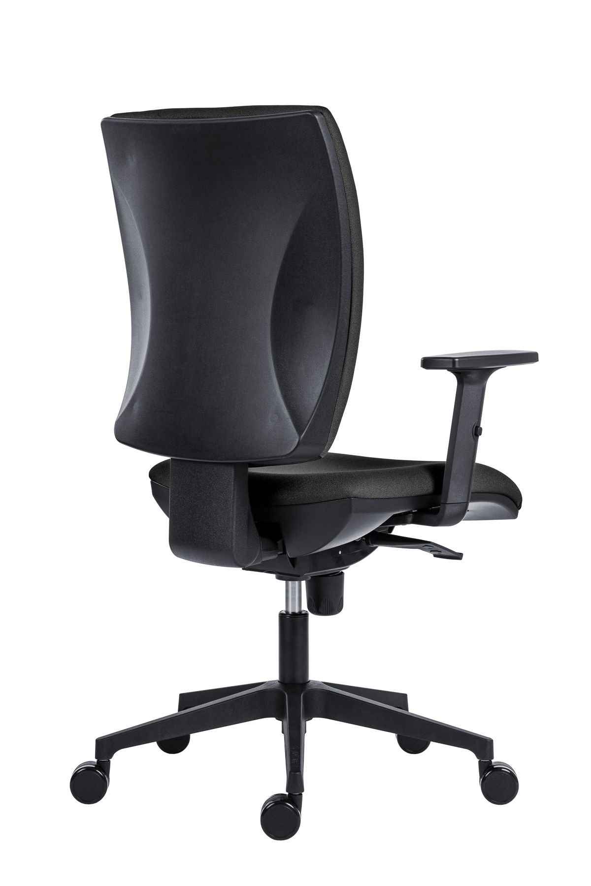 Cena je včetně područek AR 11, židle s čalouněným sedákem a opěrákem, výškové nastavení opěráku mechanismem up-down, jednopákový synchronní mechanismus SYN-K se čtyřnásobnou aretací a automatickým nastavením síly protiváhy, nylonová černá báze, kolečka pr. 60 mm univerzálně použitelná pro všechny povrchy, nosnost 150 kg, český výrobek, záruka 36 měsíců