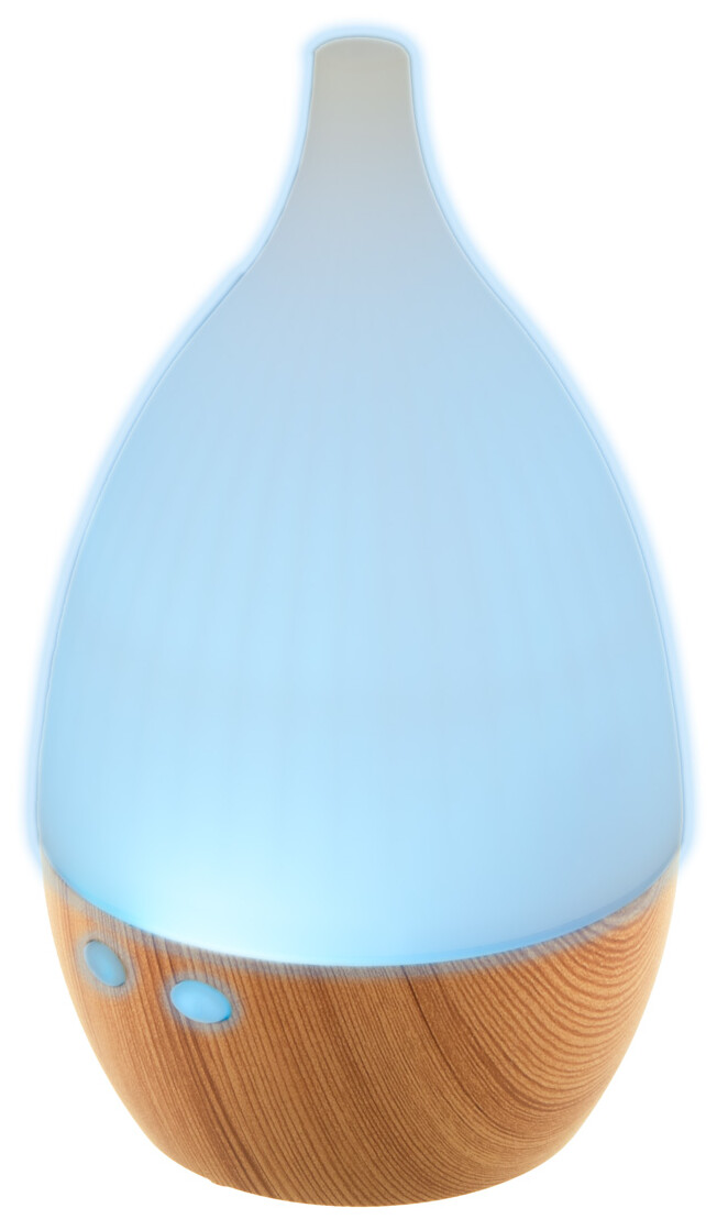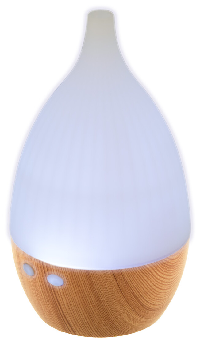 Stolní zvlhčovač z recyklovaného PP plastu s dřevěným vzorem a vícebarevným LED světlem. Včetně USB nabíjecího kabelu. Objem nádržky: 120 ml.