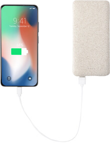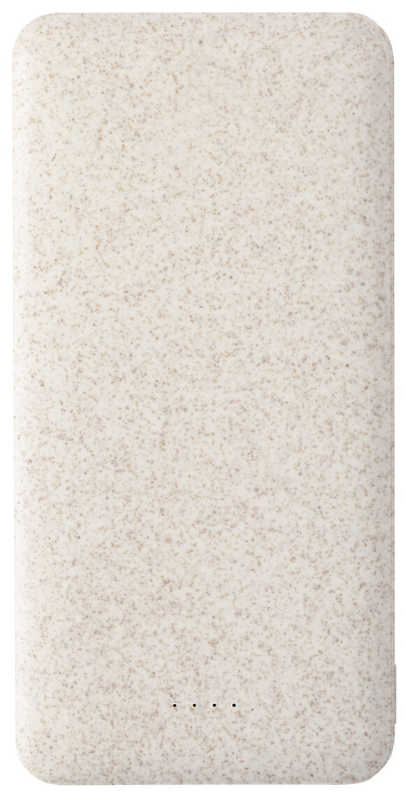 Ekologická plastová powerbanka z pšeničné slámy s 20000 mAh baterií. Se 2 porty USB a 1 portem USB-C pro nabíječku. Vstupní port USB-C.