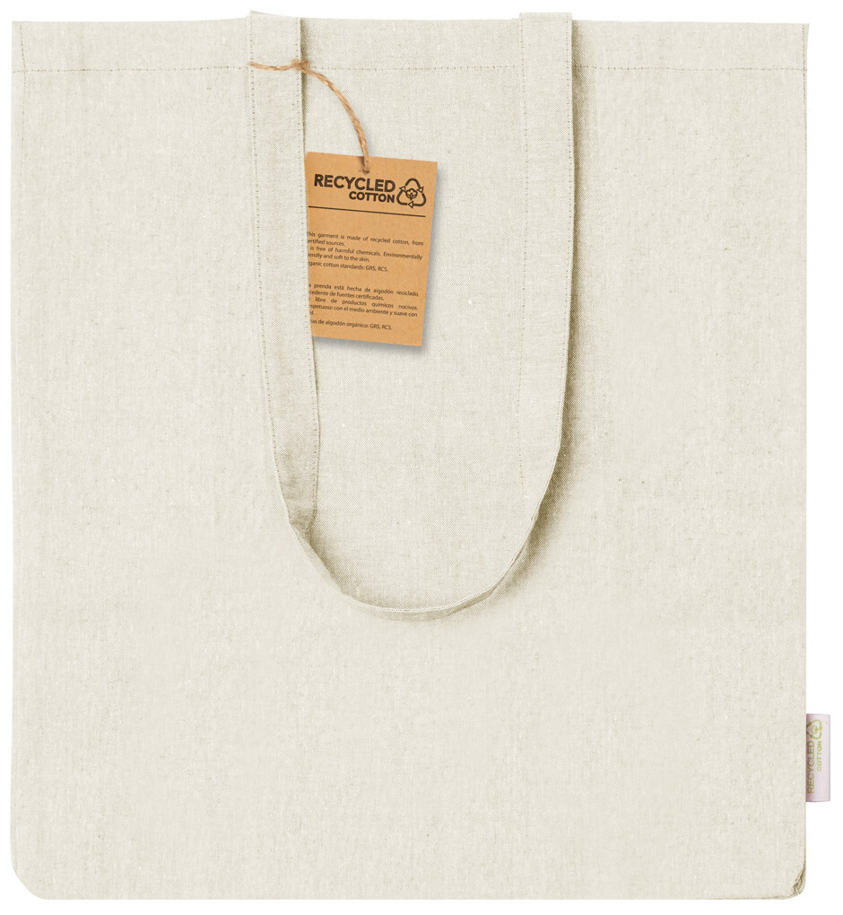 Nákupní taška z recyklované bavlny s klínem, dlouhými uchy a výrazným štítkem z recyklované bavlny. 100% recyklovaná bavlna, 140 g/m2.