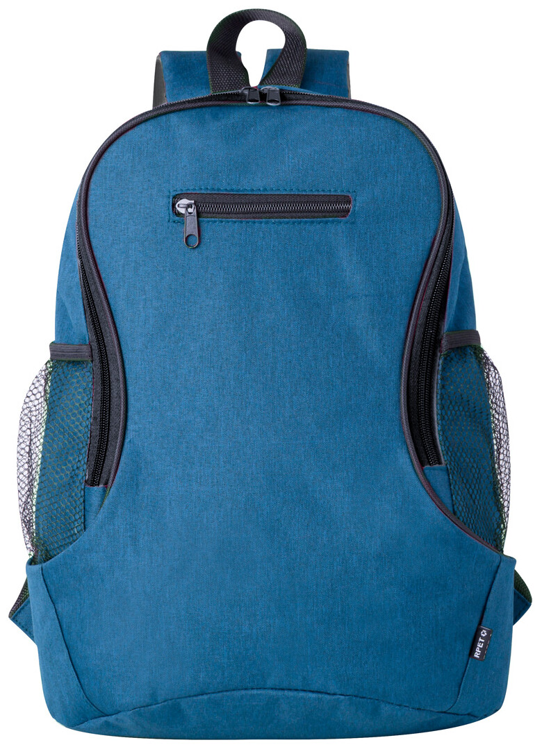 Batoh RPET s přihrádkou na zip a přední kapsou, boční síťované kapsy, polstrovaná záda a ramenní popruhy. 300D RPET polyester s výrazným štítkem RPET.