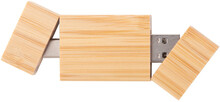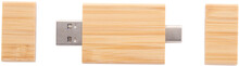 OTG USB flash disk v bambusovém pouzdře s pamětí 8/16/32 GB. S konektory USB a USB-C. V kraftovém papírovém sáčku. USB 2.0.