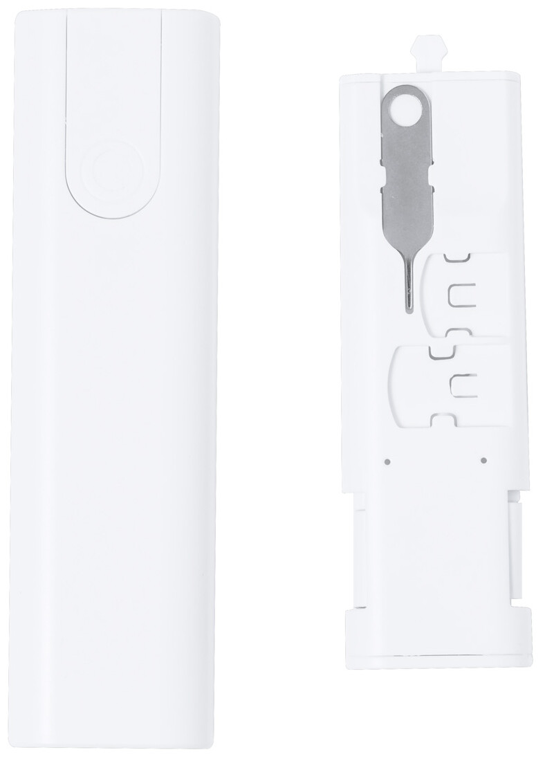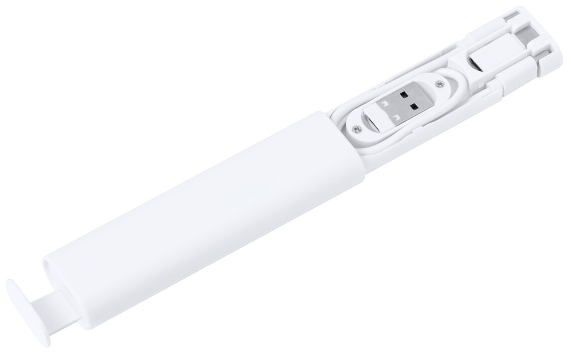 Sada USB nabíjecího kabelu v ABS plastovém pouzdře s funkcí držáku na mobil. S vysunovačem SIM karty a konektory micro USB, USB, USB-C a Lightning.