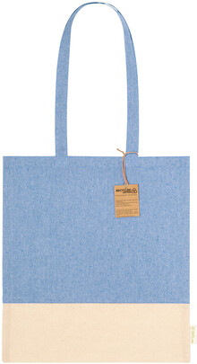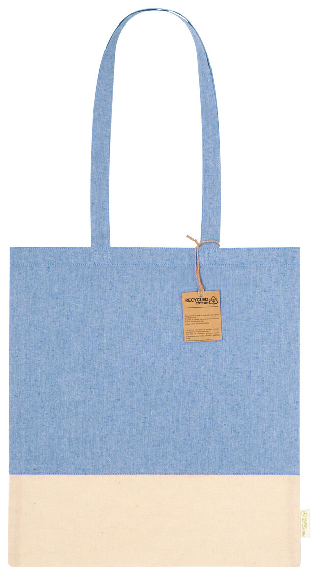 Dvoubarevná nákupní taška z recyklované bavlny s dlouhými uchy a výrazným štítkem z recyklované bavlny. 100% recyklovaná bavlna, 120 g/m2.