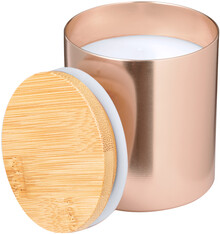 Vanilková vonná svíčka v hliníkovém držáku s bambusovým víčkem.