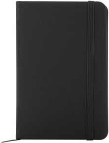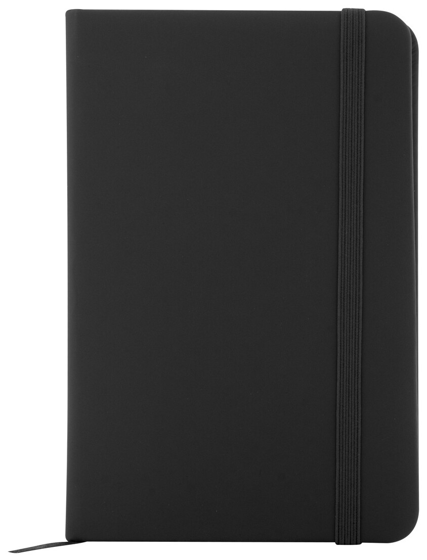 Blok A6 z recyklované PU kůže se 100 čistými listy z recyklovaného papíru. Se záložkou v odpovídající barvě a gumičkou.