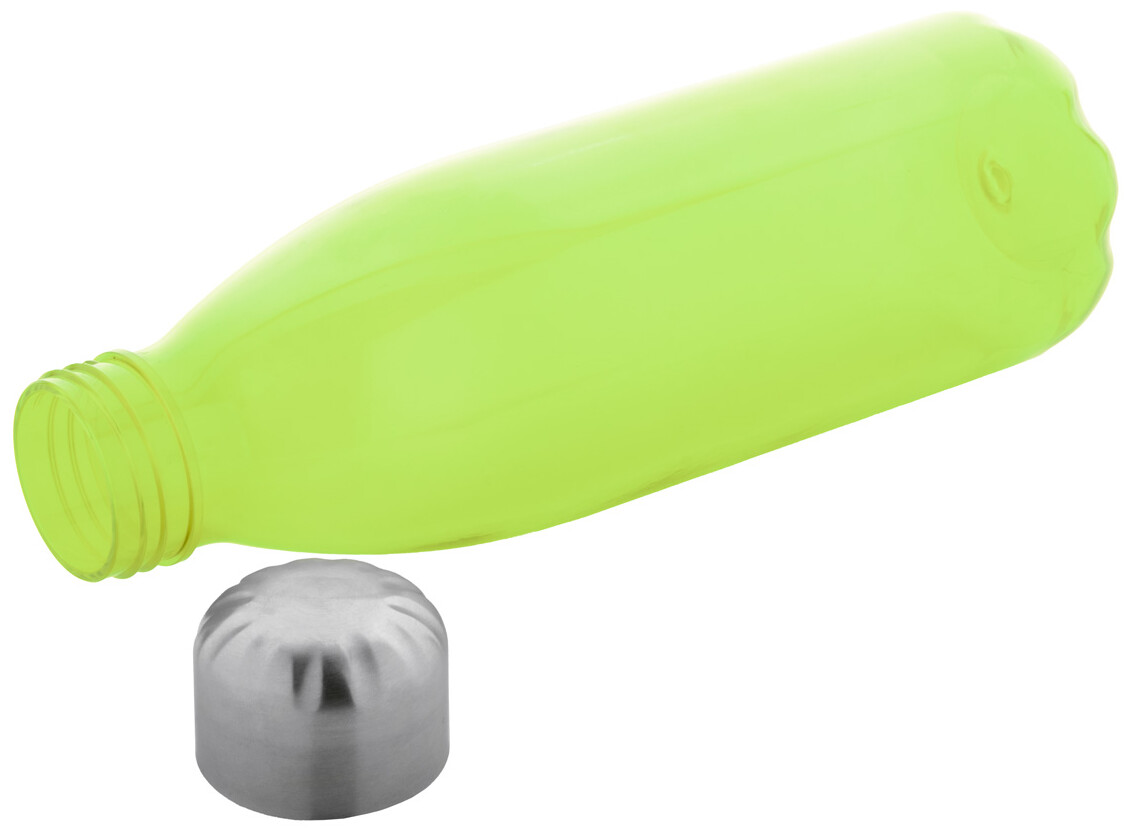 RPET láhev s nerezovým uzávěrem, 600 ml. Bez BPA. Nevhodné pro sycené nápoje.
