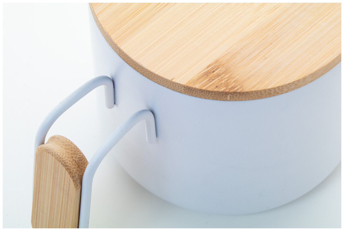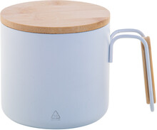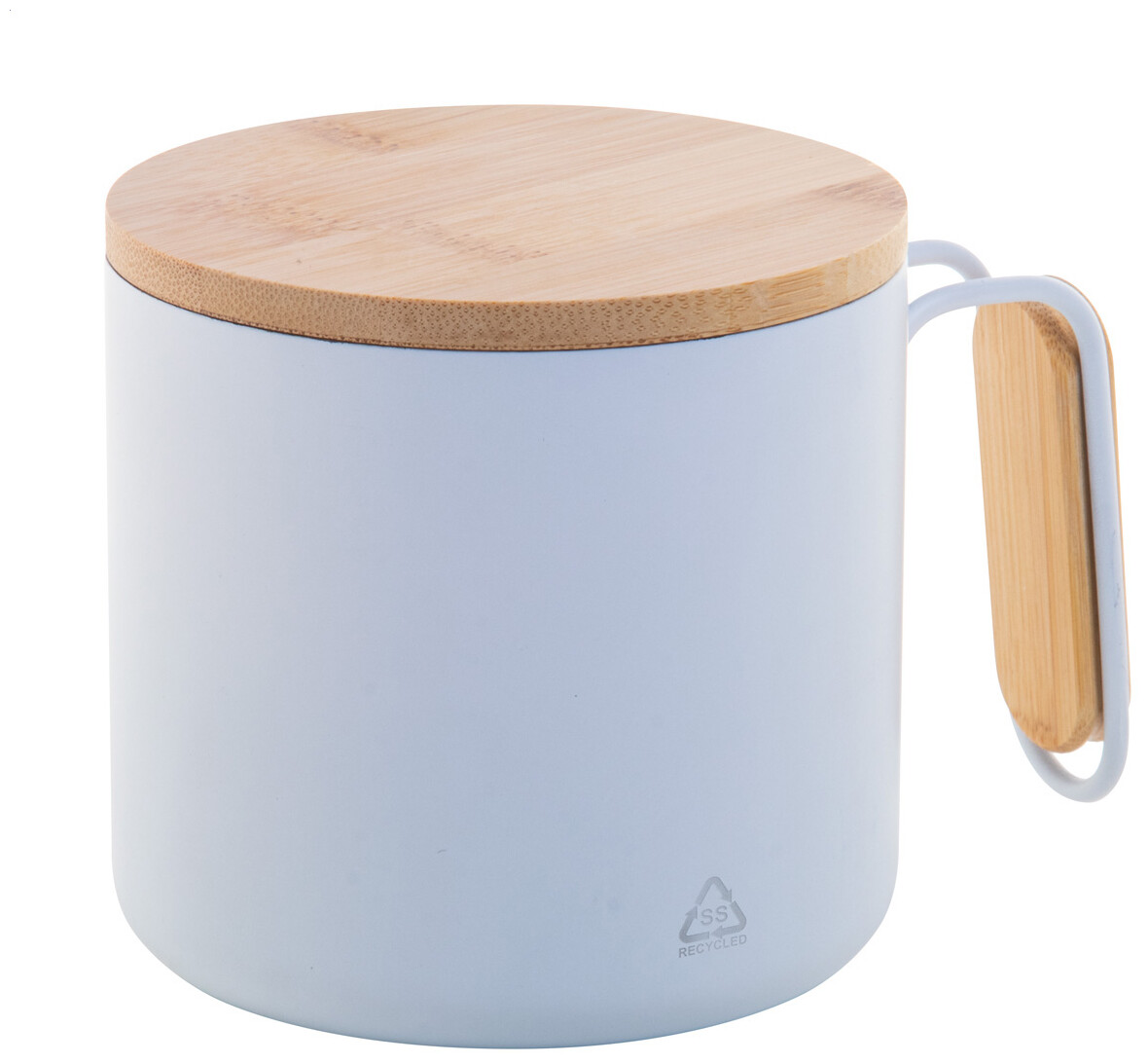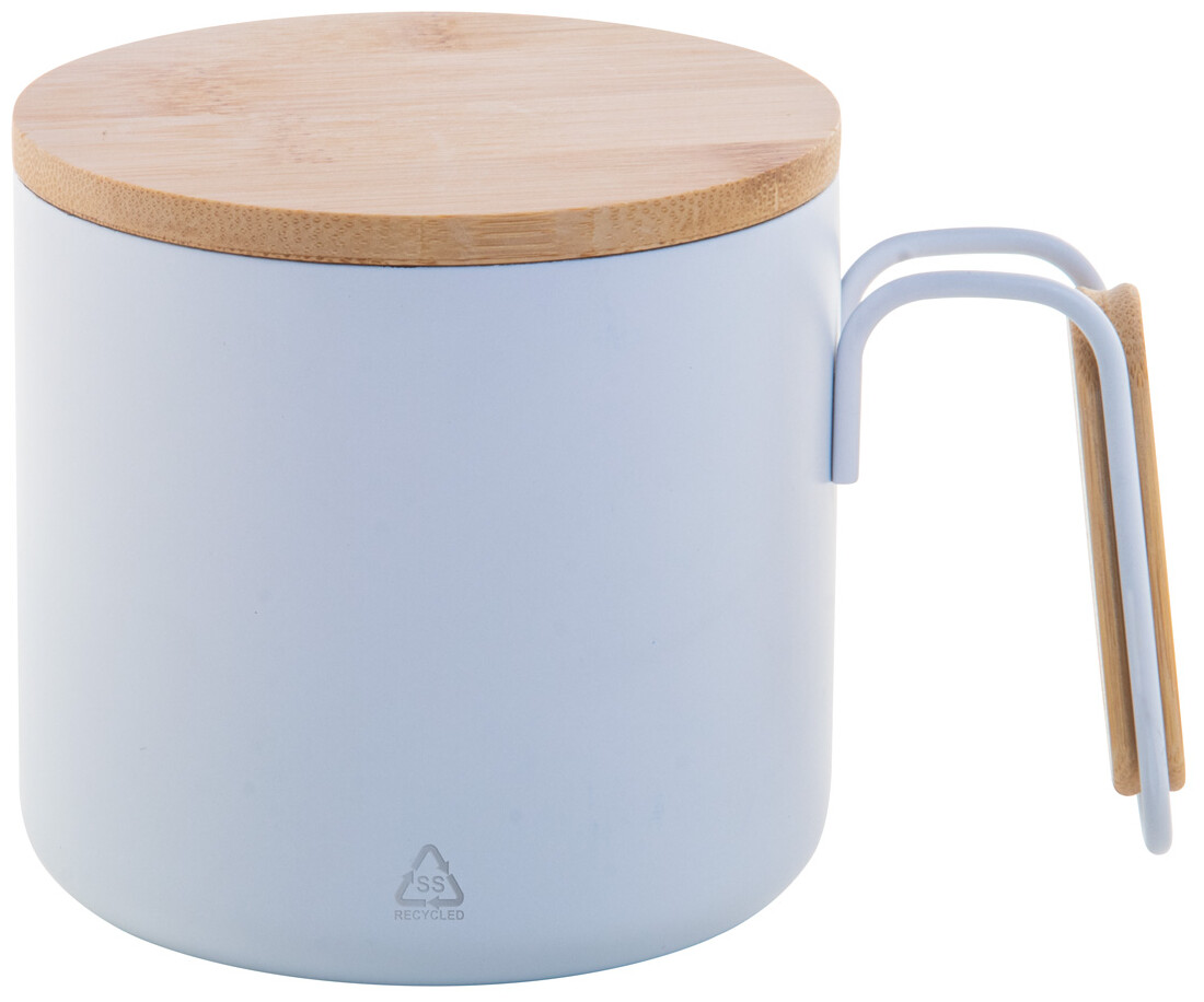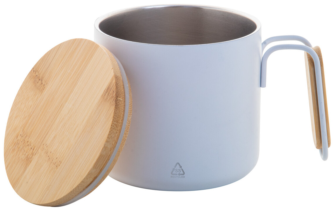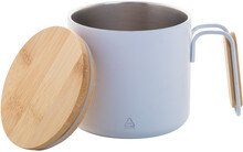 Dvoustěnný termo hrnek z recyklované nerezové oceli s bambusovým víčkem a rukojetí. 300 ml.