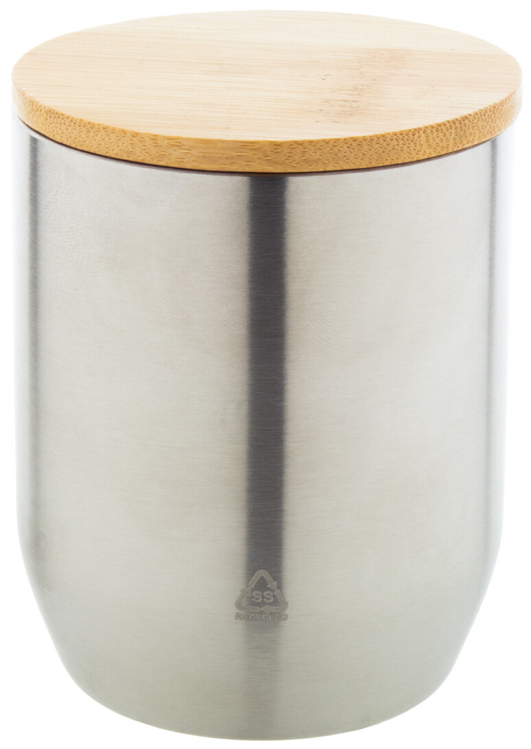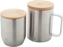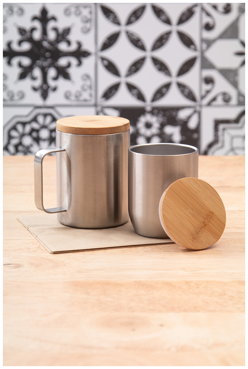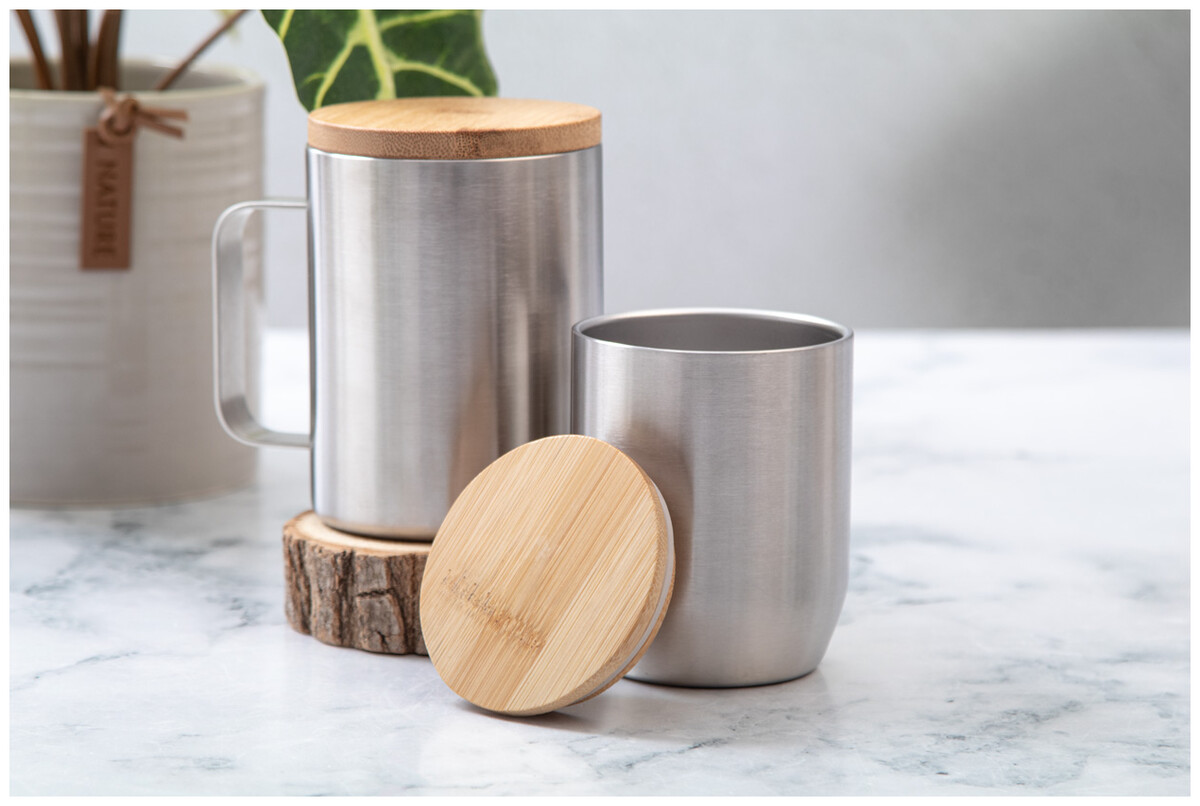 Dvoustěnný termo hrnek z recyklované nerezové oceli s bambusovým víčkem, 300 ml.