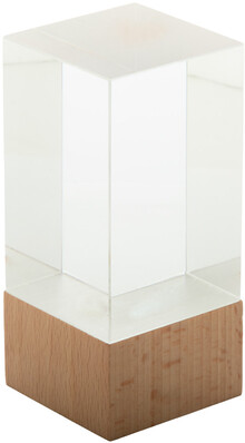Skleněná trofej s podnoží z bukového dřeva. V kraftové dárkové krabičce.