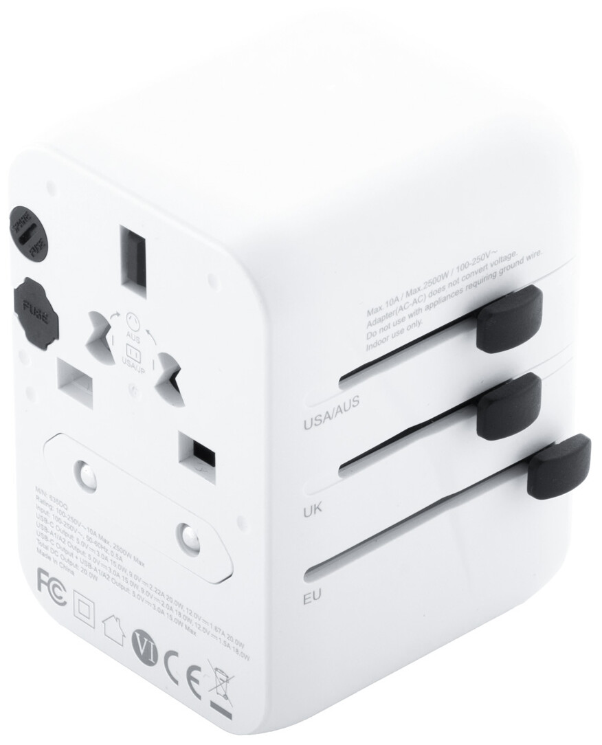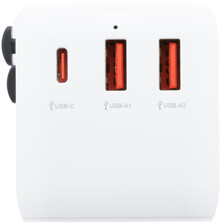 Univerzální celosvětový cestovní adaptér z ABS plastu se zabudovanými kolíky pro USA, Evropu, Velkou Británii a Austrálii. Se 2 porty USB a 1 portem rychlé nabíječky USB-C. Podporuje technologii rychlého nabíjení (PD20W).