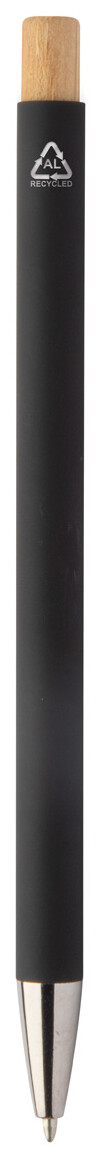Kuličkové pero z recyklovaného hliníku s pogumovaným povrchem a bambusovým tlačítkem a chromovými detaily. Se speciální vrstvou pro zrcadlové laserové gravírování. S modrou náplní.