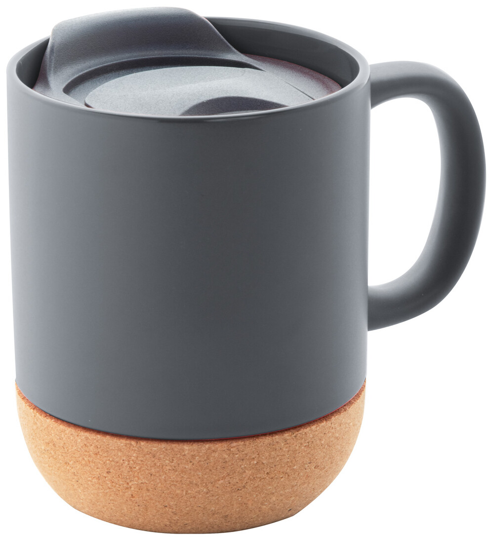 Vysoce kvalitní keramický hrnek s přírodním korkem a PP plastovým víčkem na pití. S matnou vnější a lesklou vnitřní povrchovou úpravou. 325 ml. V kraftové papírové krabici.