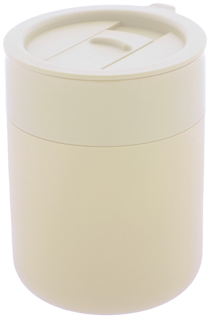Silikonem potažený keramický cestovní kelímek s PP plastovým odkapávacím víčkem. 300 ml.
