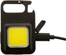 Multifunkční hliníková baterka s vysoce výkonným COB reflektorem a vestavěnou USB dobíjecí baterií (400 mAh). S karabinou, magnetem a otvírákem na láhve. S vysokým, nízkým a blikajícím světlem. Včetně USB nabíjecího kabelu.