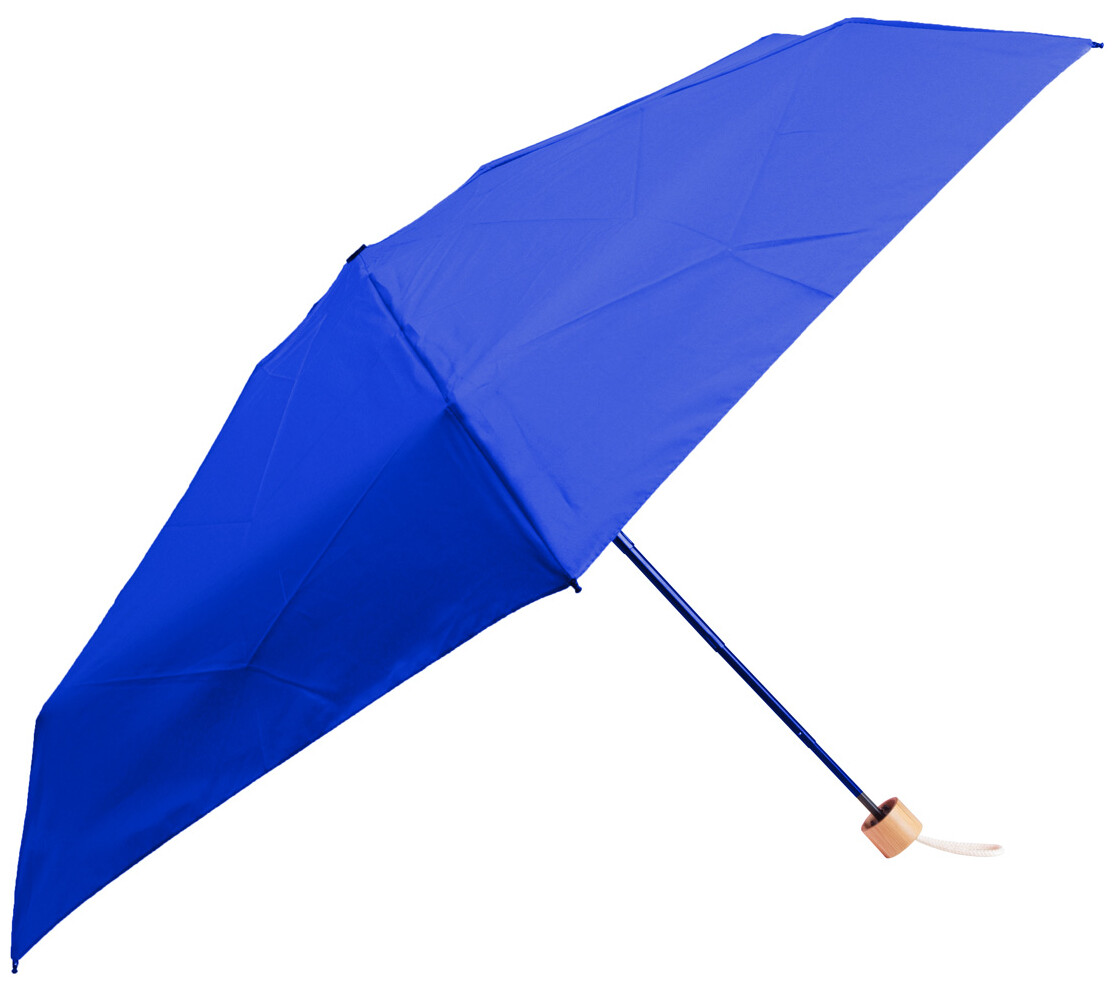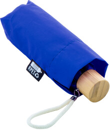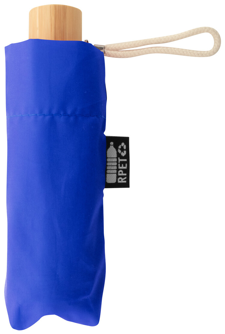 Manuální, větruodolný 3-skládací mini deštník s 6 panely v pouzdru v odpovídající barvě. S kovovým rámem, sklolaminátovými žebry, bambusovou rukojetí a bavlněným poutkem na ruku. 190T RPET pongee, s výrazným štítkem RPET.