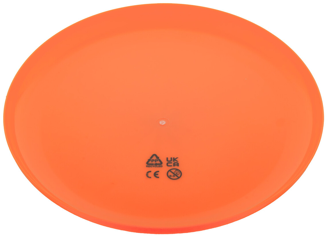 Frisbee z recyklovaného PP plastu s rovným povrchem. Ideální pro tisk.