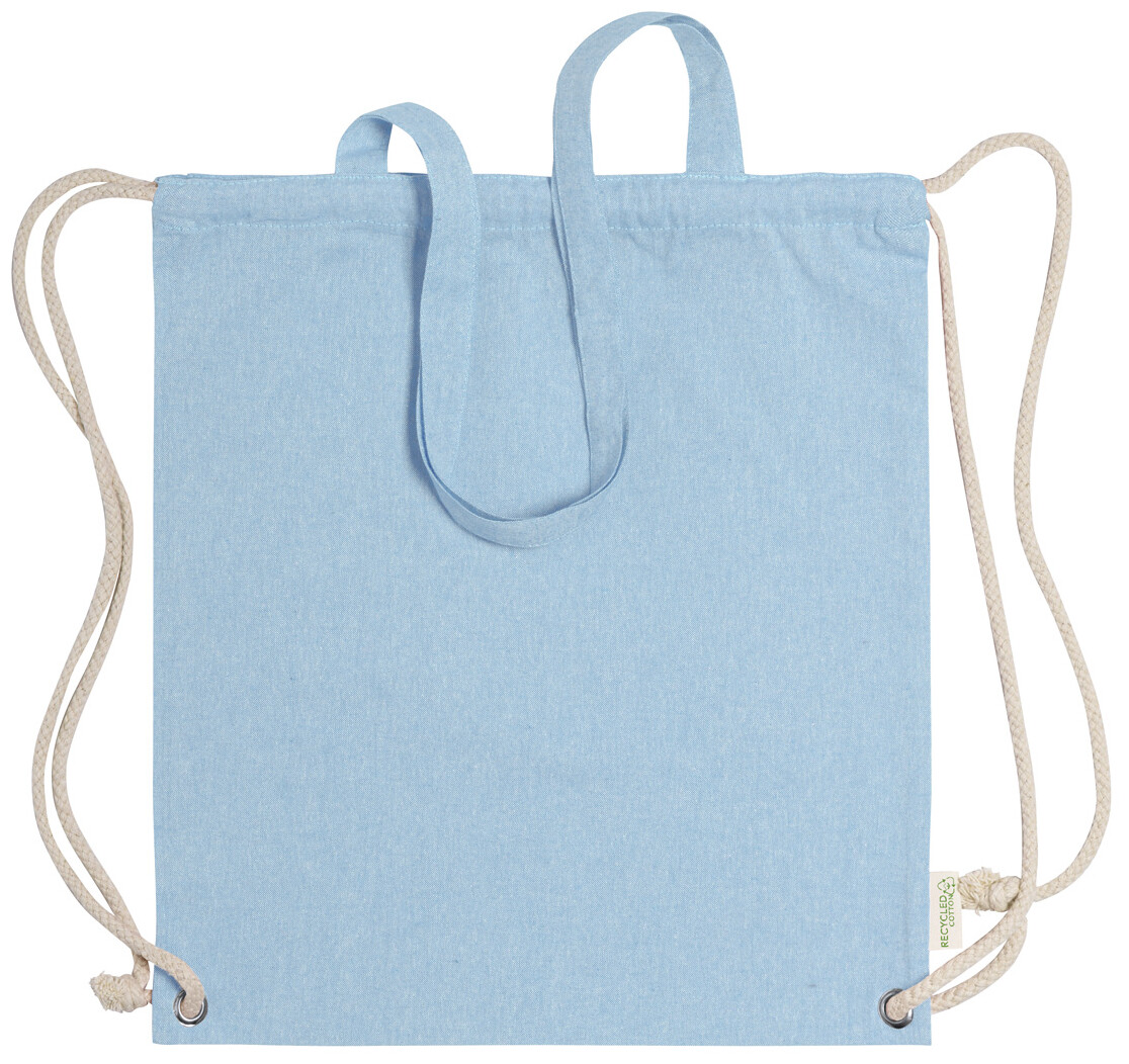Vak na stahování šňůrkou z recyklované bavlny se silnými pletenými šňůrami a dlouhými uchy. Lze jej také použít jako nákupní tašku. 100% recyklovaná bavlna, 140 g/m2.