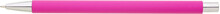 Tenká, jednoduchá propiska s růžovým pogumovaným tělem a chromovými doplňky. Náplň X20, modře píšící.