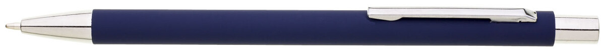 Tenká, jednoduchá propiska s tmavě modrým pogumovaným tělem a chromovými doplňky. Náplň X20, modře píšící.