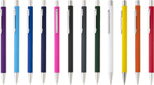 Tenká, jednoduchá propiska se zeleným pogumovaným tělem a chromovými doplňky. Náplň X20, modře píšící.